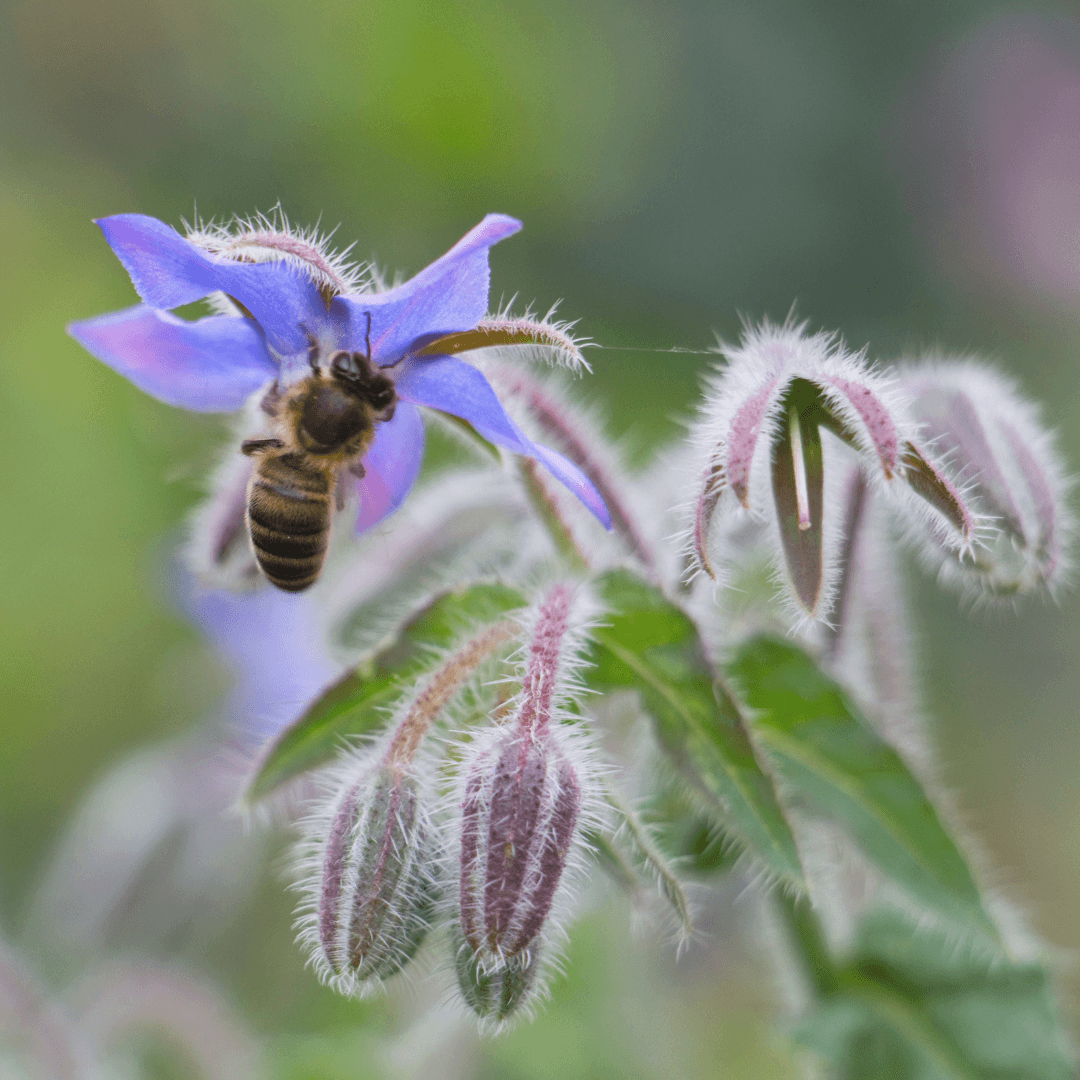 The flowers of Borage are beloved by bees and other pollinators because they take very little time to replenish their nectar-rich nectaries, making them a continuous food source for these vital garden visitors.