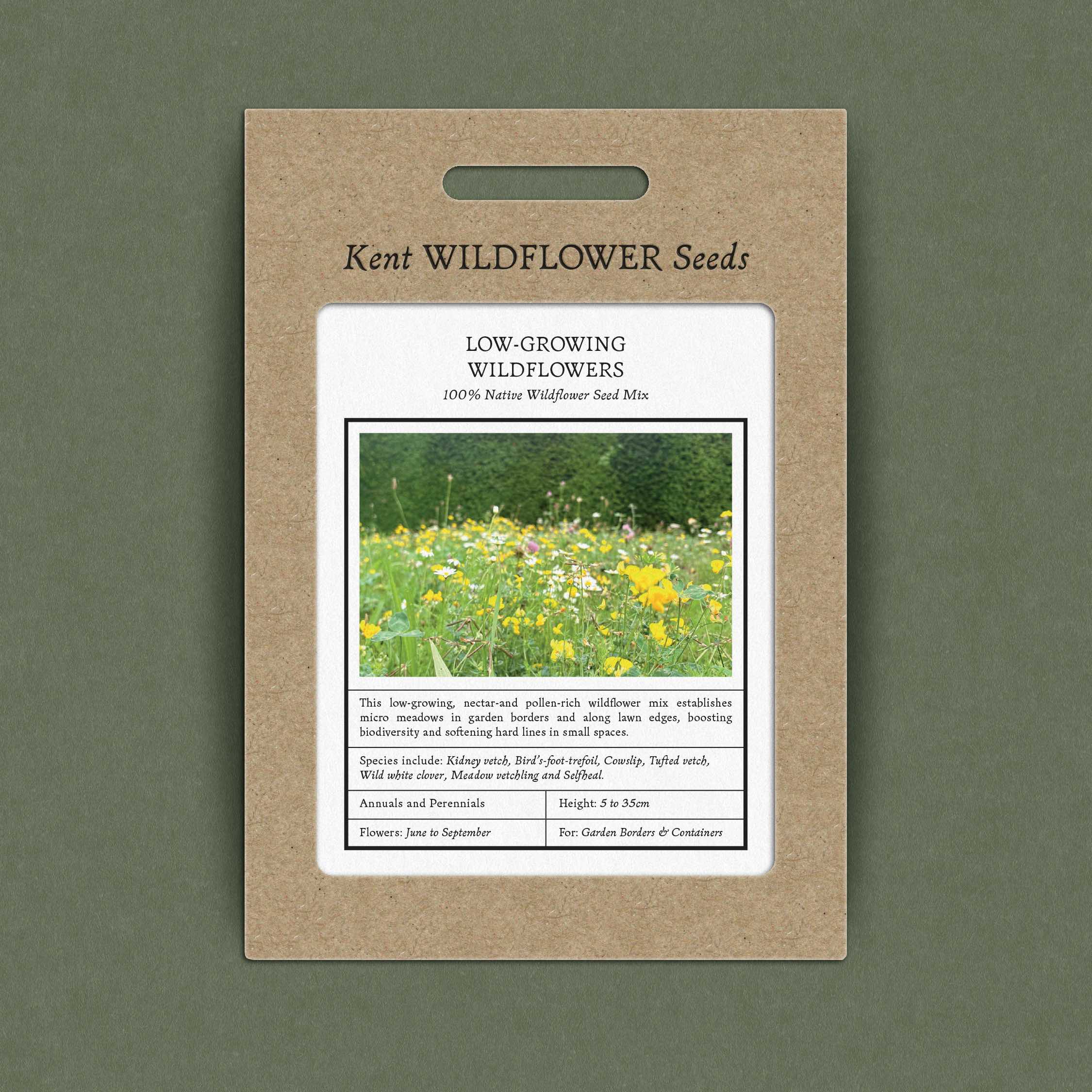 This low growing wildflower mix is well suited for sowing in low-flowering lawns, window boxes, containers, and at the front of garden borders. Designed with nature and the environment in mind, this garden wildflower mix is low maintenance, gives a spread of flowering times throughout the season, attracts pollinators, and supports habitat creation for insects, birds, and small mammals.