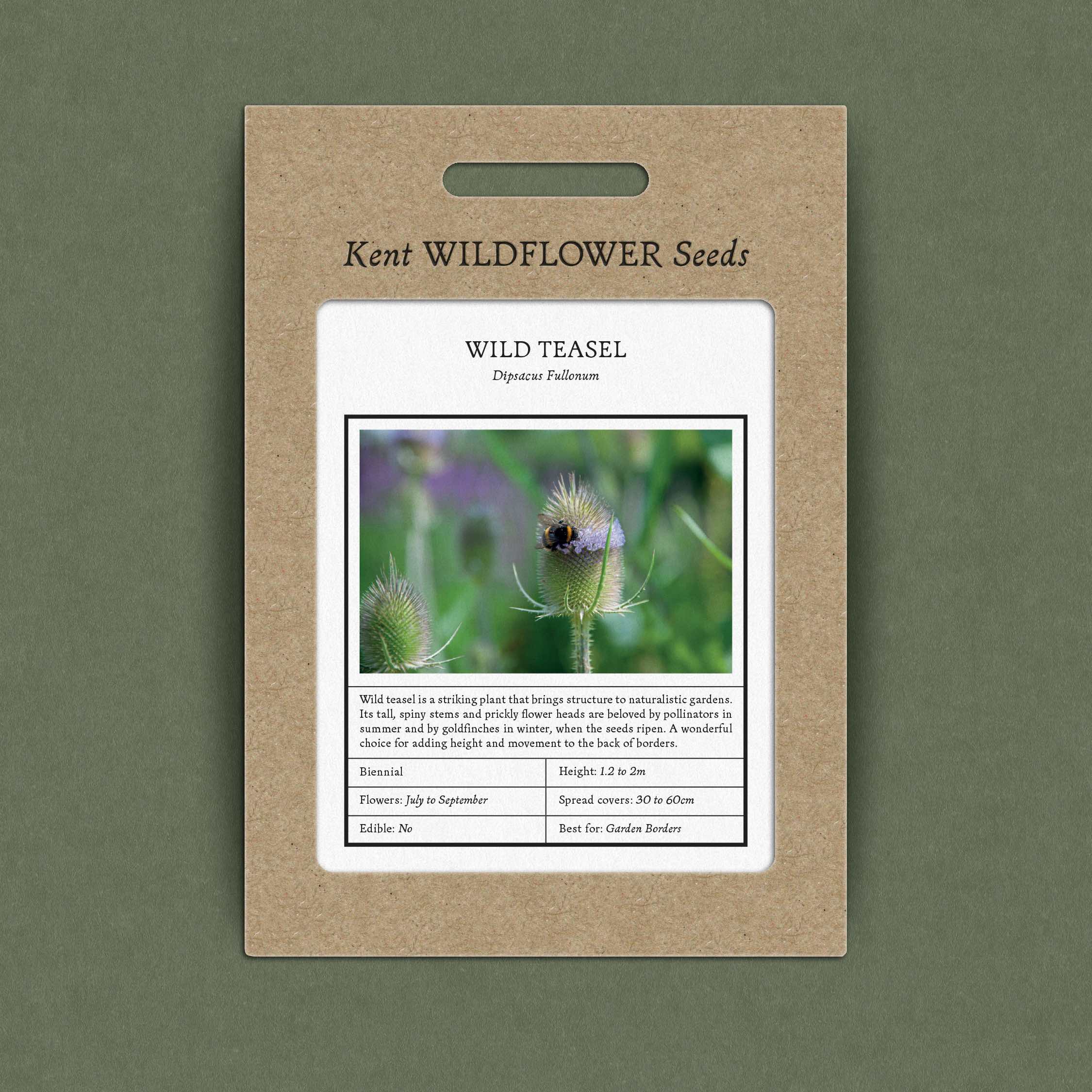 A biennial, wild teasel spends its first year establishing a rosette of spiny leaves before sending up tall flowering stems the following season. It thrives in full sun and well-drained soils, tolerating poor or dry ground where many plants struggle. Its flowers provide nectar for pollinators, and the distinctive seed heads are a valuable winter food source for small birds like goldfinches. Left to self-seed, teasels can naturalise gracefully, adding vertical interest and wildlife value to wildflower meadows or naturalistic borders.
